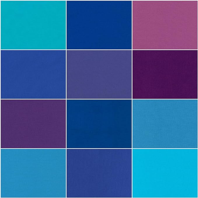 Peacock Palette – Charms Square Fabric Bundle by Robert Kaufman. Comprises of 41 x 5″ inch Precut squares in a rainbow palette with small-patterned, tonal designs from the Kona® Cotton. The 5″ square cut pack is perfect for charm quilts, in a variety of colors and prints to play with! Kona is a quilter’s favorite for a reason: from its vast array of hues to its thicker weave, it’s the perfect fabric for patchwork, adding needed structure to your projects while being a delight to sew! Pair with fabrics from other Collections for solid contrasts, borders and backgrounds. Charm pack Quilting squares can be used to make a variety of projects, from table runners to full-size quilts!
