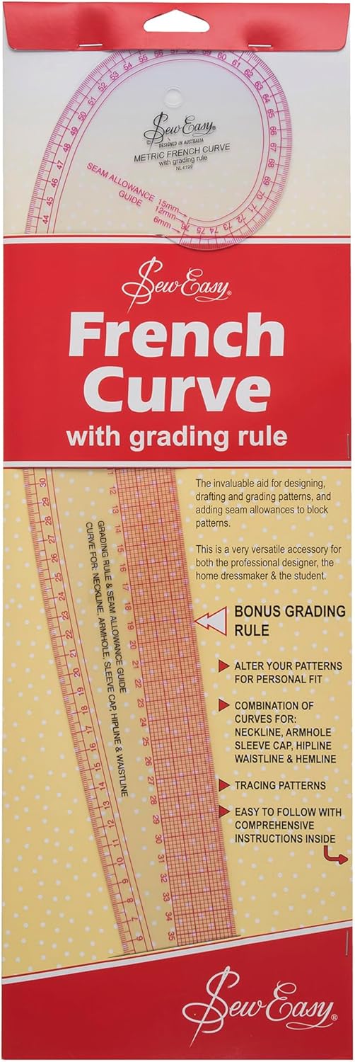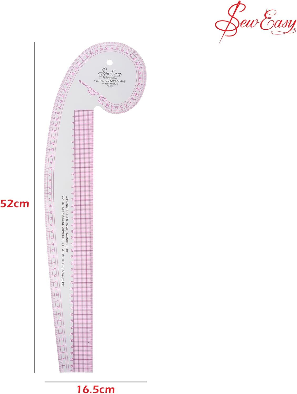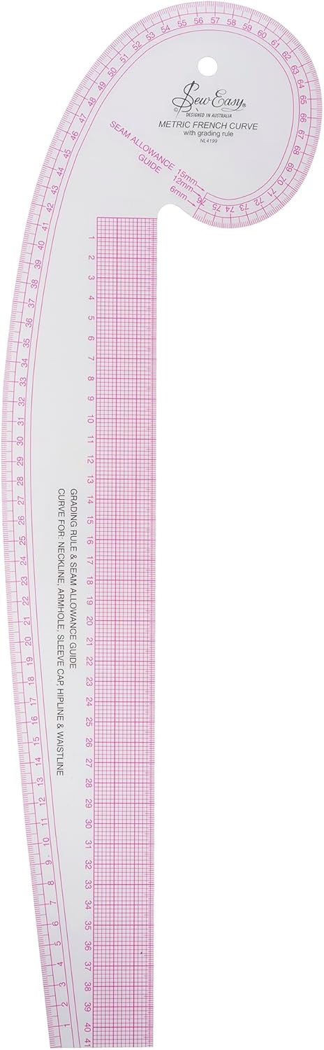W&M Metric Sewer’s Ruler has red Markings in cm’s and is perfect for marking, cutting and grading patterns. Perfect your patterns with precision using the Sew Easy French Curve Metric Ruler. Tailor curves for neckline, armhole, sleeve cap, hipline, waistline, and hemline effortlessly. Designed for both right & left-hand use.